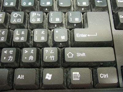 現在就開始動手清潔,我們先看一下清潔之前的鍵盤,這裡是 Enter 鍵的地方,看得出來比其他地方髒的多。