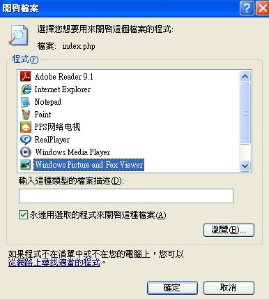 2. 進入下一個選擇介面,選擇"Windows Picture and Fax Viewer"開啟,確定。