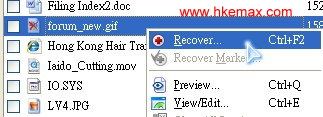 3. 看見檔案標示有"X"(代表已刪除的檔案),滑鼠按右鍵選擇"Recover" (請看圖片)