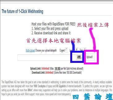 2. 在網頁的中段, 你可找到上傳檔案的方格 “瀏覽”. 選取你要上傳的檔案, 按 "Upload" 開始上傳. (如下圖)