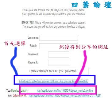 4. 上傳完成後,記下你的"Download-Link"和"Delete-Link". 你可以分享這個"Download-Link"給你的會員,